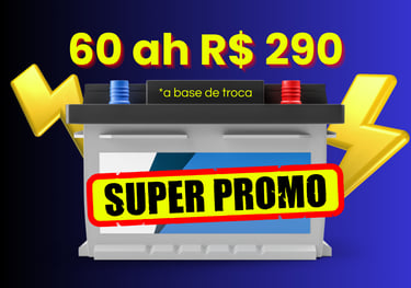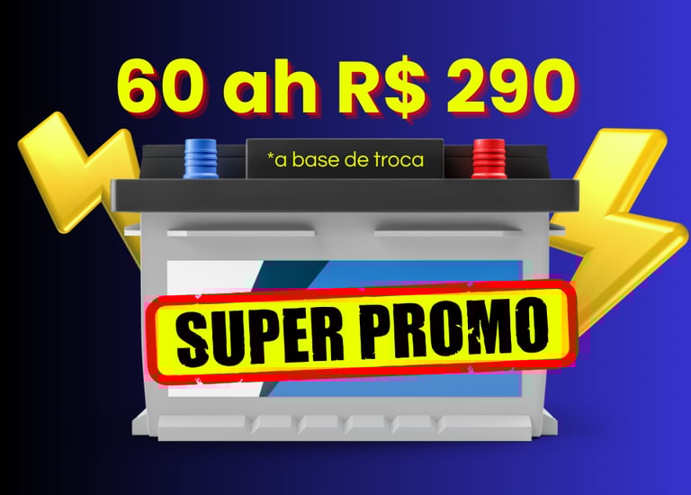 Bateria 60Ah – Apenas R$290, com 1 ano de garantia (base de troca).