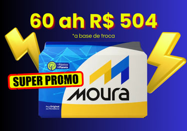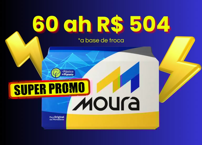 Bateria Moura 60Ah – Só R$504, com 2 anos de garantia (base de troca).
